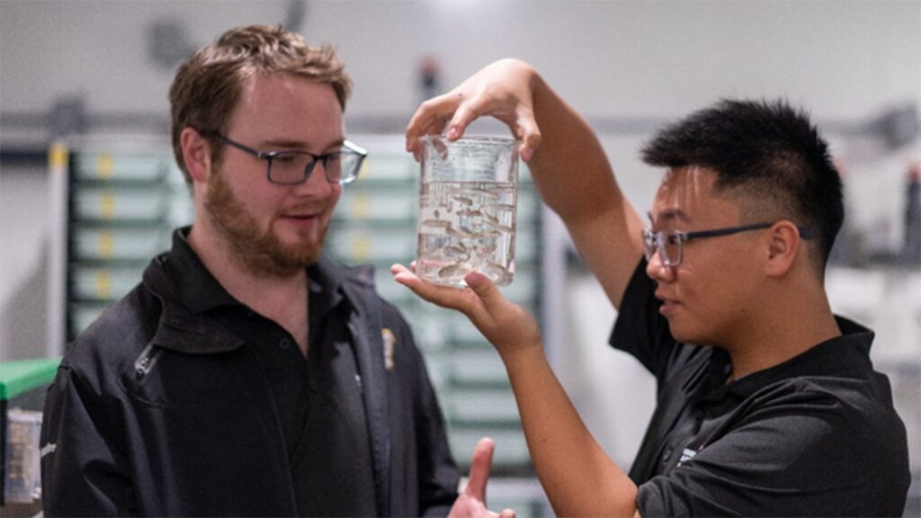 The Aquaculture Centre consists of over 17 professors that work at least in part on aquaculture research on topics that include fish genetics, health, nutrition, physiology, and ecology. Dr David Huyben’s research focuses on optimising nutrition and gut microbiota to support the health of farmed salmonid fishes, while Dr Dominique Bureau’s internationally recognised research focuses on improving our understanding of nutrients utilisation and deposition. Professor Rich Moccia’s research focuses on aquatic animal food production with an emphasis on the ecosystem impacts and animal welfare, and he was instrumental in developing industry code of practice standards.