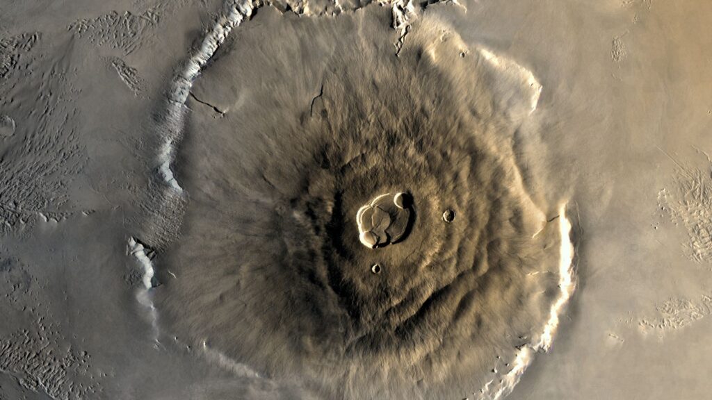 Mars is home to some of the largest volcanoes and mountains in the solar system. This is because, unlike Earth, Mars does not appear to have plate tectonics (the movement of tectonic plates that causes much of Earth’s volcanic activity). Instead, lava from ancient active volcanoes on Mars just sits there, piling up and building much larger structures over time. The result was the volcanic province of Tharsis, a region dotted with volcanoes that stretches 3,700 miles (6,000 kilometers) across the Earth’s surface.
